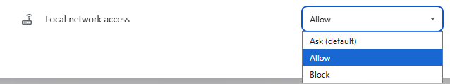 If you don't see the Local network access setting in your Page Actions menu, go to your Chrome browser settings: