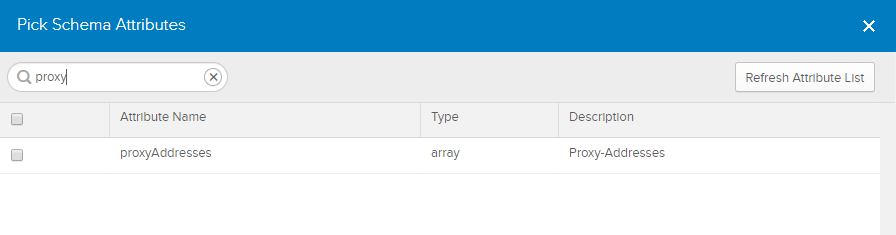 - Recherchez et sélectionnez l'attribut ProxyAddresses.