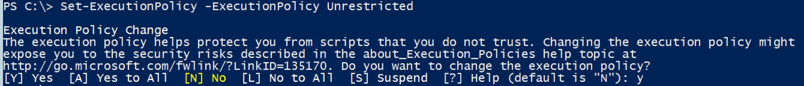 Définissez la stratégie d'exécution sur Sans restriction en utilisant la commande suivante :
