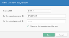 Le nom de votre compte de service. Il s'agit du nom que vous avez utilisé lors de la configuration de la version en accès anticipé de la SSO de bureau sans agent. Exemple :