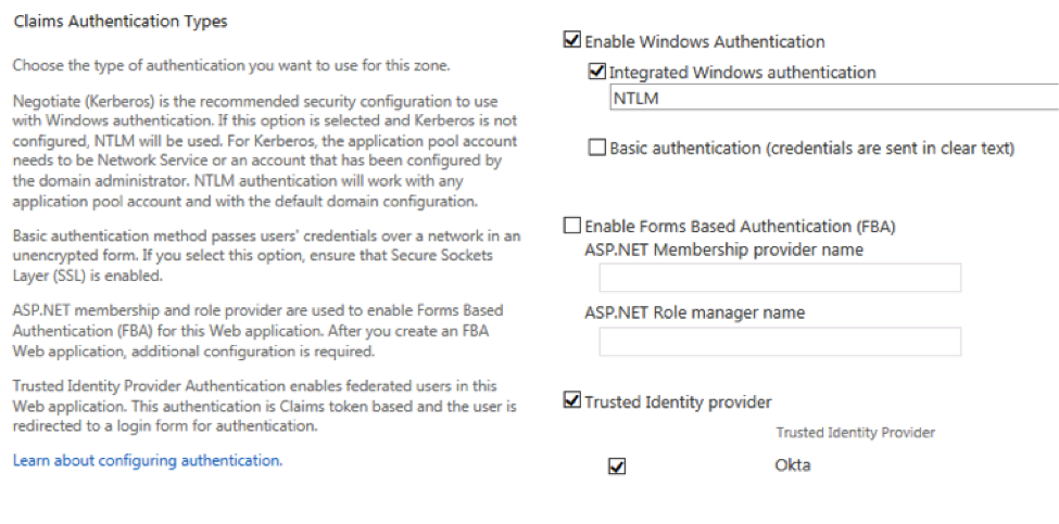 Suivez les instructions de la rubrique Ajouter SharePoint (version locale) dans Okta.