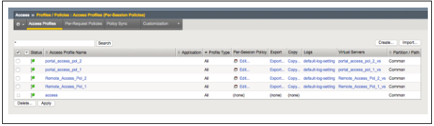 Identifiez le profil que vous souhaitez modifier, puis cliquez sur le lien Modifier… dans la colonne Politique par session , comme indiqué ci-dessous.