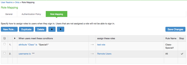 - Facultatif. Cliquez sur l'onglet Mappage des rôles,puis sélectionnez Mappage des rôles dans le menu supérieur. La page suivante apparaît :