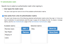 Nom Un nom unique (par exemple, Okta). Description Facultatif. Utilisez la description de votre choix. Authentification Okta (ou le nom du serveur authentification que vous avez créé précédemment).