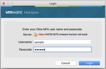 Test avec l'application client VMware Horizon et l'authentification multifacteur Okta uniquement