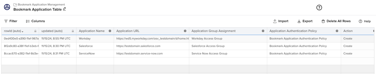 Pendant que vous effectuez la migration, certaines applications peuvent encore être fédérées avec Microsoft Entra ID tandis que d‘autres sont directement fédérées avec Okta. Dans cet état intermédiaire, vous pouvez configurer les applications de signet dans Okta pour que les utilisateurs puissent se connecter au tableau de bord de l‘utilisateur final et accéder à toutes leurs applications. Vous pouvez créer des applications de signet avec Administrateur des Workflows en utilisant les métadonnées des applications que vous exportez depuis Microsoft Entra ID.