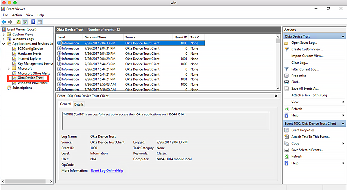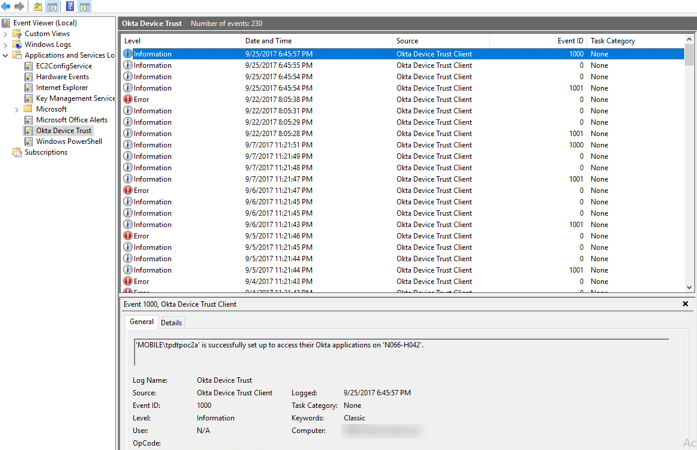 Assurez-vous que les tâches Okta Device Trust ont été installées et ont réussi :