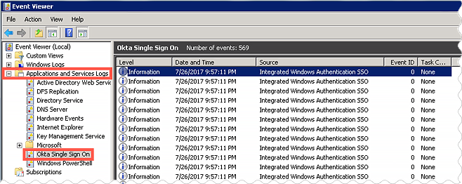 - Recherchez des erreurs dans Okta Authentification unique.