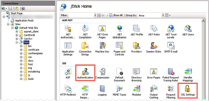 Vérifier les paramètres IIS pour l'application Web IWA