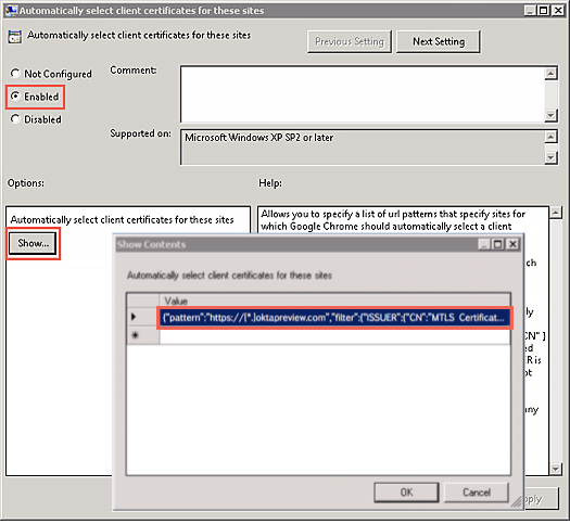 L'affichage Web doit avoir accès au magasin de certificats de l'appareil. Les ordinateurs Okta Device Trust pour Windows fonctionnent avec toute application compatible avec SAML/WS-Fed qui prend en charge l'authentification par le biais d'un affichage Web. L'affichage Web dans lequel l'authentification est effectuée doit avoir accès au magasin de certificats sur l'appareil. Cela inclut les clients Office 365 qui prennent en charge l'Authentification moderne. Voir l'article Microsoft Authentification moderne Office 365 mise à jour.