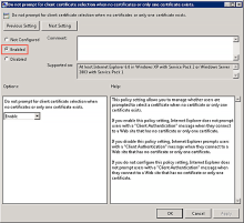 Il est possible d'activer l'indication du certificat dans IIS afin qu'un seul certificat soit présent aux utilisateurs. Consultez l'article Présentation technique de SSP de Schannel de Microsoft.