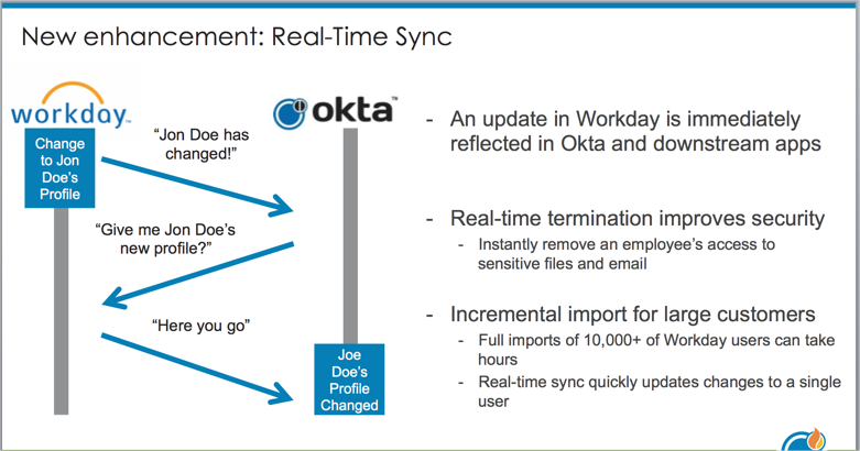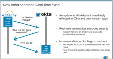 La synchronisation en temps réel (RTS) de Workday permet à Okta de recevoir les événements de création, de mise à jour et d'arrêt des utilisateurs Workday en temps réel. Les modifications apportées aux utilisateurs dans Workday sont immédiatement répercutées dans Okta et ses applications en aval.