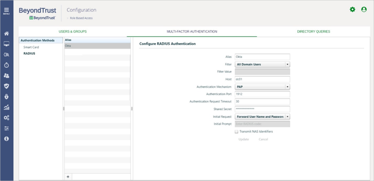 Au cours de cette tâche, nous allons définir un profil de serveur RADIUS et l'affecter à des utilisateurs au sein de BeyondInsight.