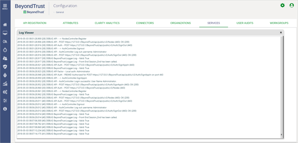 Vous pouvez consulter les journaux du site Web BeyondInsight ici, comme indiqué :